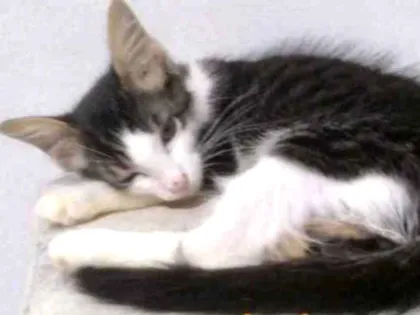 Adote o lindo Ulisses, um gato SRD machinho de 2 meses. Dócil e brincalhão, ele está à espera de um lar amoroso. Adoção responsável!