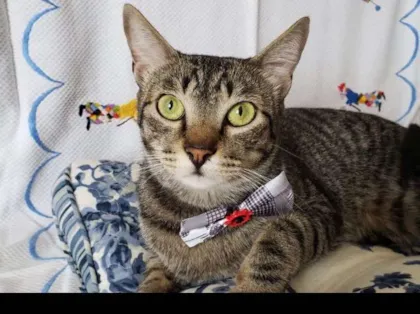 Wendy foi resgatado com seus três irmãos no Noroeste ainda bebê, sua mamãe morreu atropelada desde então participou de diversas feiras mas devido à sua pelagem nunca conseguiu um lar. Ele é um gatinho muito carinhoso, adora brincar e aceita com facilidade outros gatos.