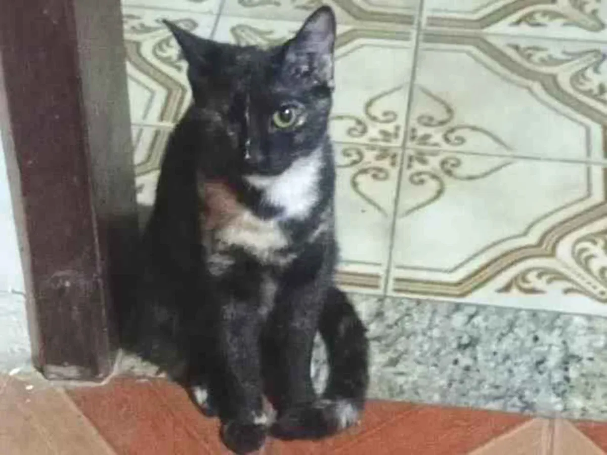 Gata filhote tricolor de 5 meses, cega de um olho, dócil e independente. Resgatada em novembro, procura um lar amoroso. ótima com gatos e pessoas.