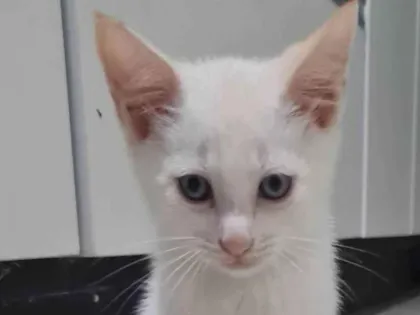 Adote nosso adorável gatinho macho SRD de pelagem branca! Dócil, brincalhão e sociável, ele é o companheiro perfeito para trazer alegria ao seu lar.