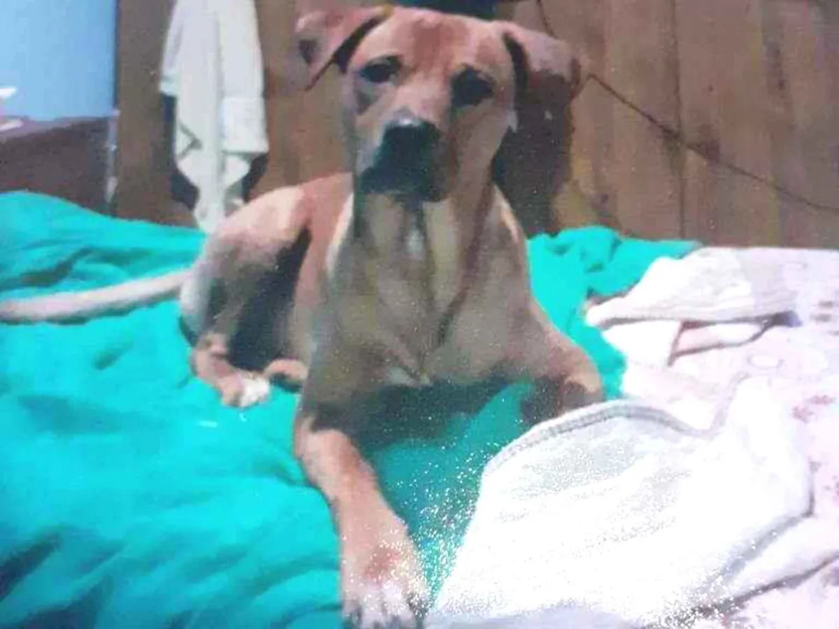 Cão caramelo escuro, magro e dócil procura novo lar. Precisa de espaço para correr e brincar. Ideal para casa com quintal ou sítio. Adote agora!