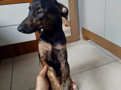 Charlotte é uma SRD de 2 a 6 meses, pelagem preta e marrom, cariñosa, sociável e ideal para famílias. Procura um lar cheio de amor e diversão.