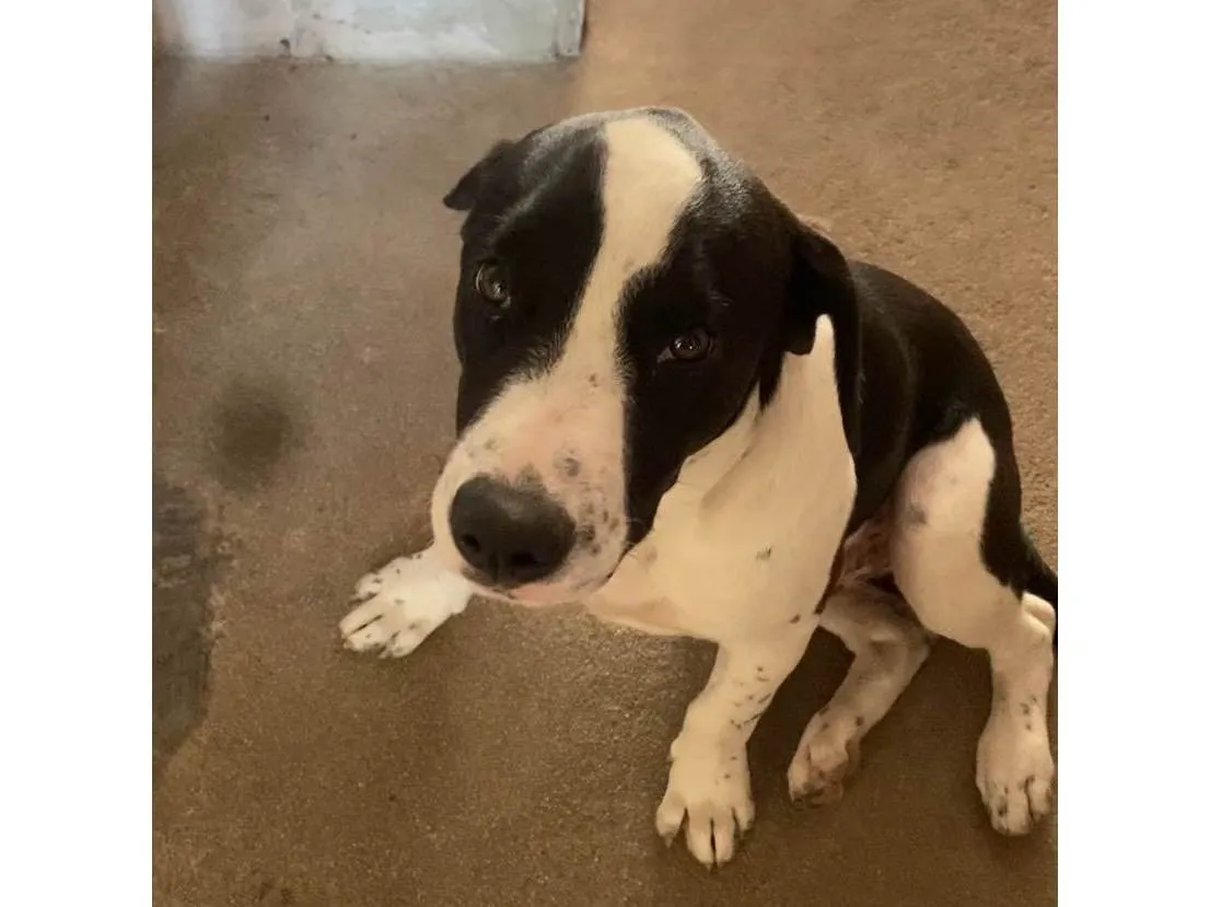 Thor é um encantador cachorro SRD de pelagem branca e preta, dócil e calmo, à procura de um lar amoroso. Vacinado, ideal para casas com quintal.