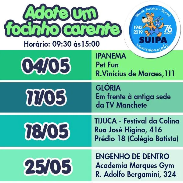 Participe da nossa feira de adoção e encontre o melhor amigo que você procura. Venha conhecer nossos pets e dar um lar cheio de amor a eles.