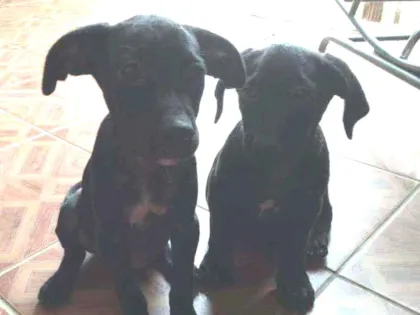 "Conheça a Dona Sem Nome: uma cadelinha preta super dócil e carinhosa, com uma manchinha branca no peito! Adote em Anápolis e ganhe um grande amor!"