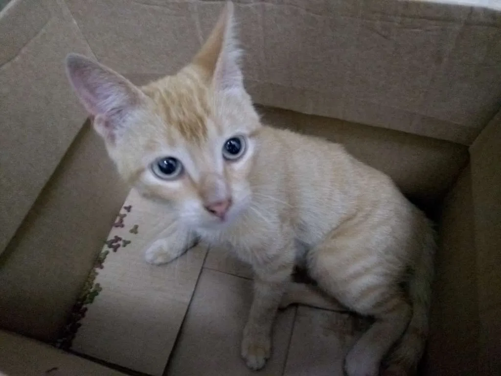 Gatinho resgatado na rua prestes a ser atropelado. Muito dócil, não morde ou arranha. Adora carinho e atenção, e tb gosta de brincar!