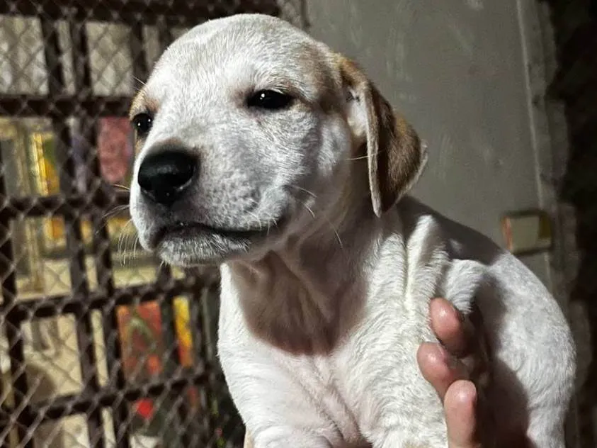 Bruce é um adorável filhote SRD de menos de 2 meses, resgatado em Goiânia. Ele está vacinado e vermifugado, e deve ficar de porte médio. Adote-o!
