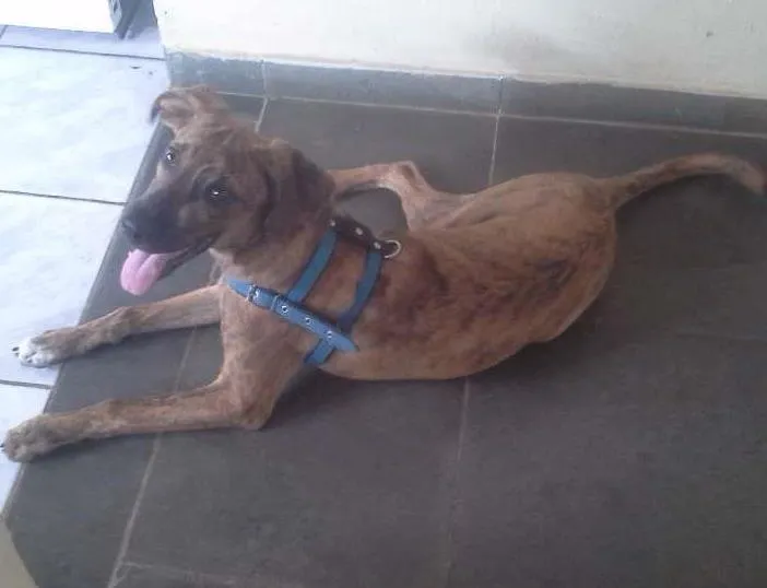 Achei ele numa lombada eletrônica onde ia acabar morrendo, havia um monte de carros parados na estrada por que ele entrava debaixo deles. Tenho viajado muito a trabalho e não tenho como cuidar como ele merece. Ele iria amar bons amiguinhos e espaço p correr. Me parece que vai ficar enorme pois com 4 meses q achei ele crescer horrores.