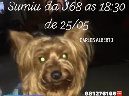 Cachorro Carlos Alberto Yorkshire Preto e Dourado Perdido em