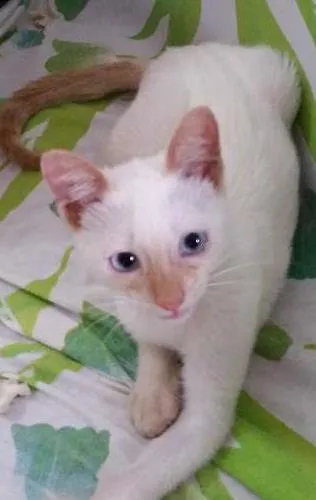 Uma gatinha linda branquinha de olhos azuis e muito carinhosa.