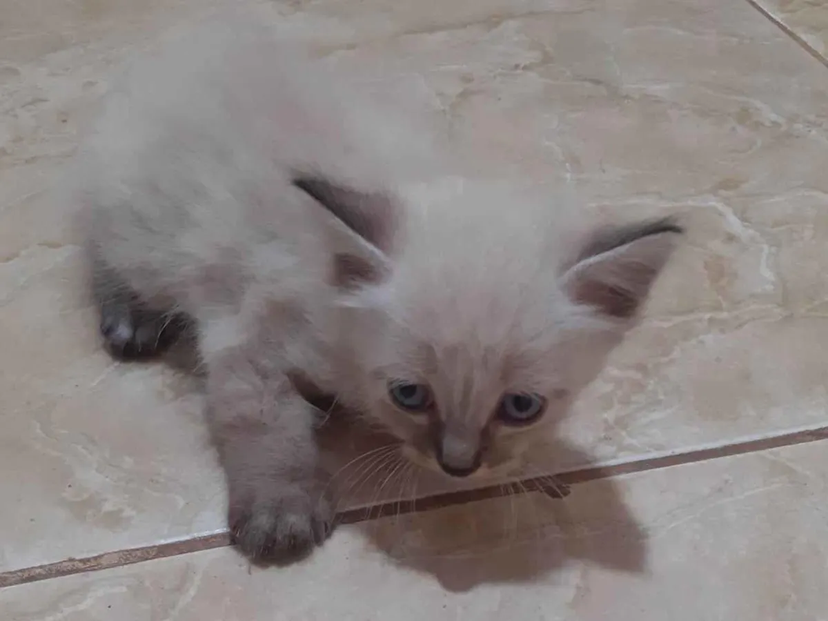 Esse gatinho caiu no meu quintal, mais não posso ficar com ele. Acho que é macho, não sei distinguir. Já come ração molhada na água.