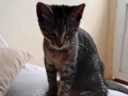 Gato cinza de pelagem adorável expressão amável e muito carinhoso, além de brincalhão. Motivo da doação: sem condições para cuidado.