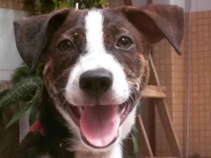 Pitoco, um adorável SRD macho de 7 a 11 meses, é um filhote de rua em busca de um lar. Dê uma chance a este amoroso companheiro!