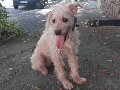 Benjamim é um cão macho castrado e vacinado, busca adoção. Ele e suas irmãs precisam de um novo lar enquanto a tutora trata câncer.