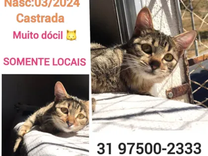 Adote o gato ISA, um SRD brincalhão e sociável de 2 a 6 meses. Ideal para apartamentos e muito dócil. Disponível em Belo Horizonte/MG.