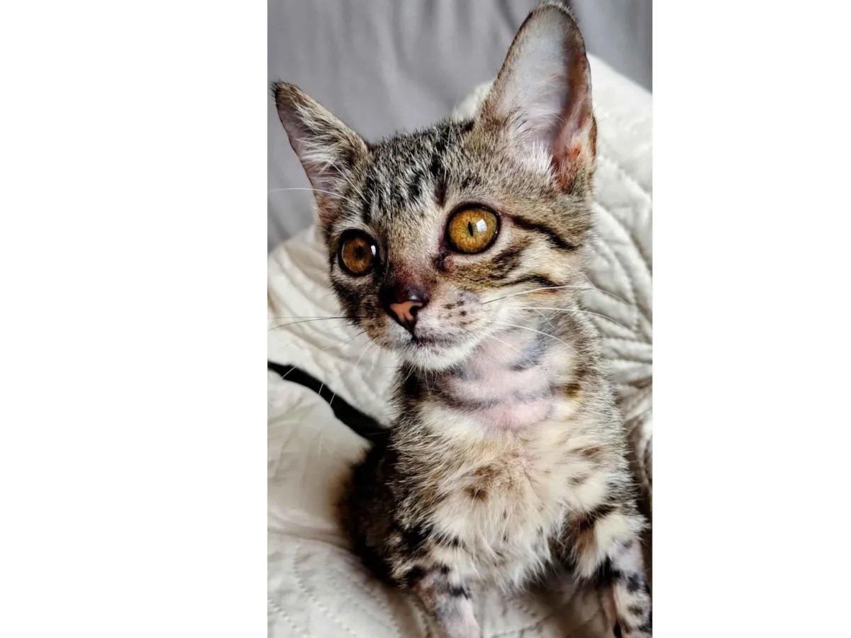 Rita, resgatada aos 2 meses após graves problemas de saúde, está saudável e busca um lar. Ajude a espalhar a mensagem para encontrar uma família.