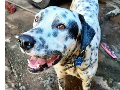 Dálmata carente e amoroso resgatado. Procura lar com espaço e amor. Atenção: não se dá com gatos. Ideal para quem quer um companheiro fiel.