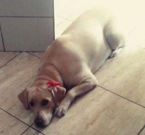 Adote a Princesa, uma Labrador bege claro de 1 ano, adorável e cheia de energia. Ela está no coração de Ribeirão das Neves/MG. Faça uma mudança na sua vida!
