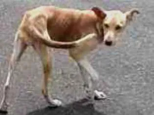 Cadelinha amarela de pelagem curta, porte médio e dócil, abandonada em rodovia. Precisa de um lar para escapar do frio e da fome em Santa Luzia.