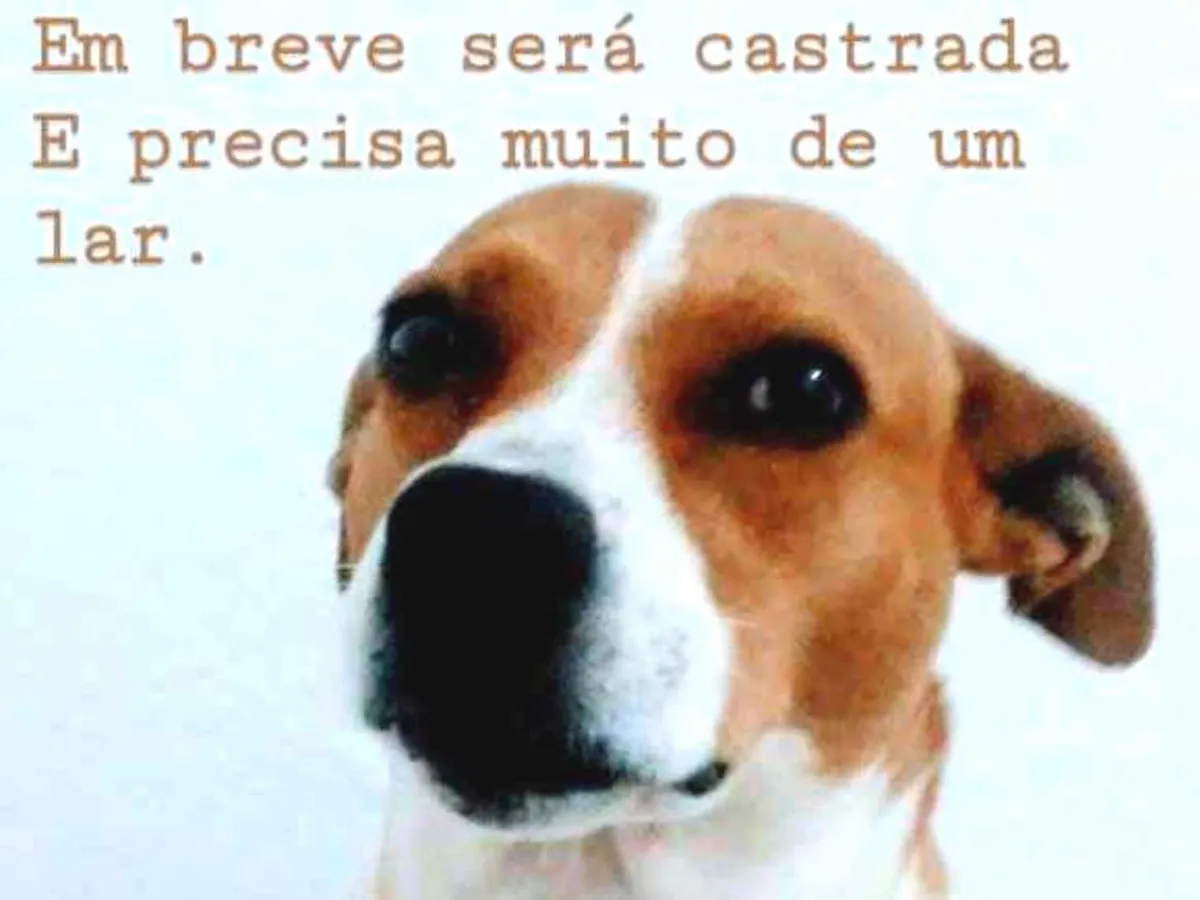 Adote Mel, uma linda cadela SRD de porte médio com 2 a 6 meses. Carinhosa e tranquila, ela espera por você em Santa Luzia/MG. Castração garantida!