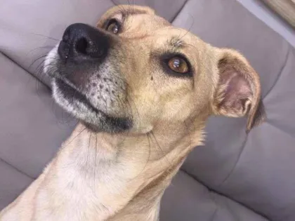 Cachorrinha resgatada, doce e brincalhona, procura um lar. Já teve filhotes, é ideal para crianças. Porte médio e adulta, ótima companhia.