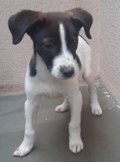 Conheça o Sadam, um adorável cachorro macho, brincalhão e dócil, com menos de 2 meses. Ele está disponível para adoção em Uberlândia/MG. Venha conhecê-lo!