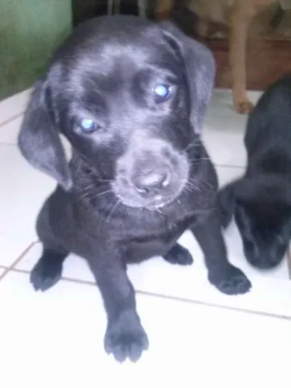 Estou doando um filhote de labrador preto (mãe labradora, pai vira-lata), macho.