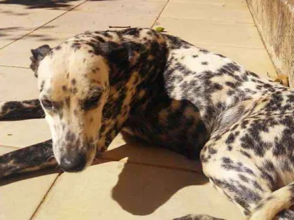 Trouxe para casa, estava muito debilitada e com para dianteira ferida. Busco o dono, se não encontrar não poderei ficar com ela pois tenho outros três cachorros e o maior o rotweiller estranhou ela é não tem aceitado muito bem. Portanto ela está precisando de um lar urgente.