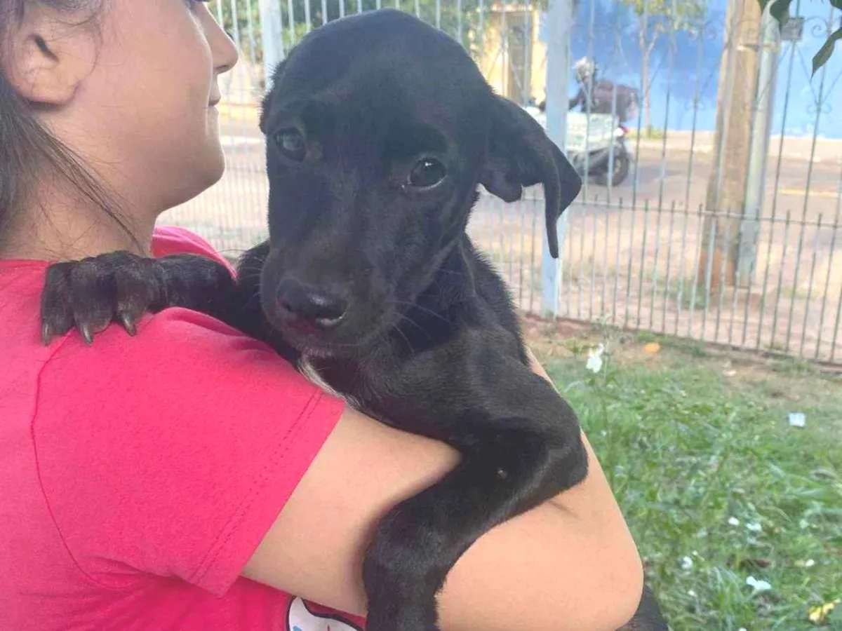 Adote o Pingo, um lindo e carinhoso vira-lata de 3 meses. Inteligente e com pelagem brilhante, ele busca um novo lar em Campo Grande/MS.