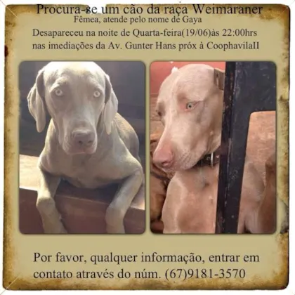 Cachorro raça Weimaraner idade 1 ano nome Gaya