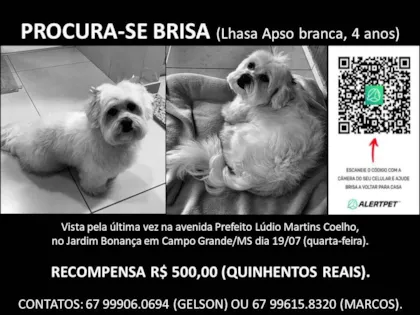 Brisa, Lhasa Apso de 4 anos, desaparecida em Campo Grande