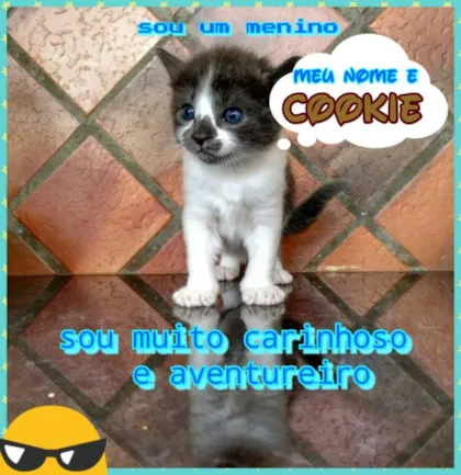 Cookie é um gatinho muito esperto e brincalhão, de grandes olhos azuis, muito carinhoso. Procuro um lar para ele cheio de amor e dedicação, pois esses bichinhos dependem de nosso afeto.
