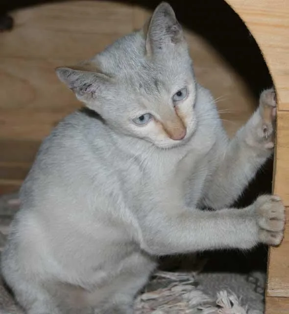 Ela é prateada com olhos azuis, e seu nome é Dulcinha