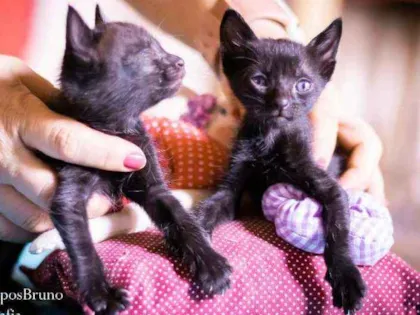 resgatei esses três filhotes de gato, duas fêmeas, uma frajola e uma preta e um macho preto. todos são muito carinhosos e brincalhões. Tenho quatro gatos adultos