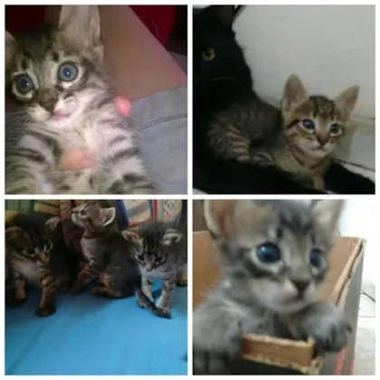 Filhotes com quase 2 meses, dois machos e duas fêmeas, comem ração e usam a caixinha de areia, brincam o tempo todo e são super carinhosos.