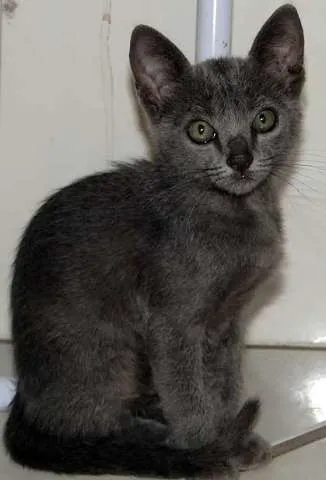 Adoção da Fofucha, gatinha cor chumbo de 2 meses, muito brincalhona e sapeca. Desverminada e com castração garantida. Venha conhecer!