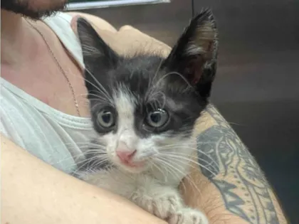 Gatinho encontrado na rua. Tem aproximadamente 2 meses. Já come ração. Super dócil! Sem pulgas e limpinho. Só falta fazer teste de fiv/felv.