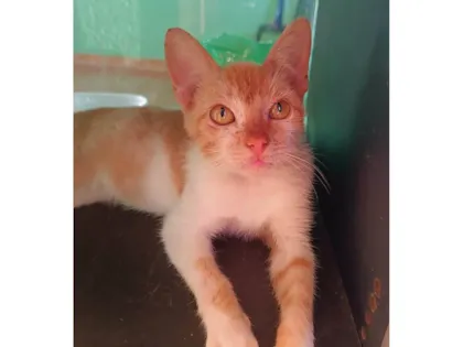 Ele tem cerca de 6 meses, é manso (só um pouquinho tímido no começo), se dá bem com outros animais, come ração e usa caixinha de areia direitinho! ??