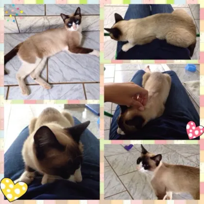 Esta gatinha linda foi resgatada na rua onde moro. Muito carinhosa, desde que começamos a alimentá-la não saiu mais daqui de casa. Ela se esfrega, sobe no colo e pede atenção. Tem os olhinhos mais lindos que já vi, quando olho para eles tenho a impressão de que imploram por amor, carinho e cuidado. Me emociono ao falar dessa linda pois o afeto que ela nos dá é tão puro, tão sincero que tudo que mais desejamos é encontrar um lar para que ela possa chamar de seu. Não posso ficar com ela pois meu marido é alérgico.