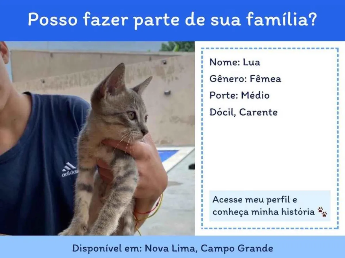 Adote a Lua, gatinha carinhosa e sociável em Campo Grande