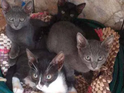 Encontrei esses 4 gatinhos abandonados numa construção, estou cuidando temporariamente Mas não posso ficar com eles. Ja comem ração e usam caixa de areia.