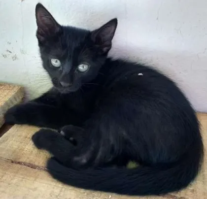 Este gatinho lindo e macho, tem 60 dias, já come ração. Uma gata foi abandonado pelos donos e veio morar em casa já barriguda. Temos 17 gatos e 2 cachorros e não estamos conseguindo ficar com esta ninhada. Todos os demais já são castrados.
