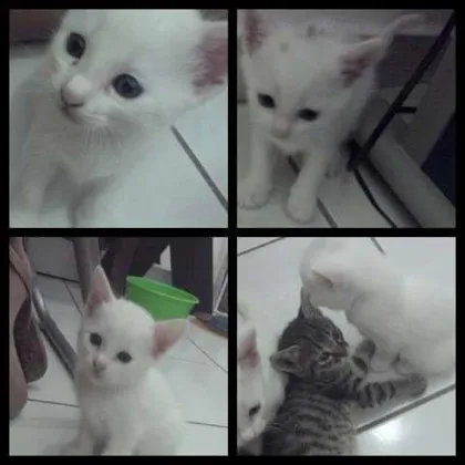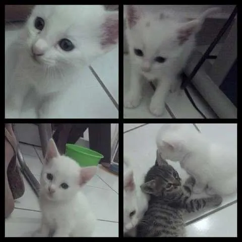Nós somos 3 irmãozinhos branquelos que estão a procura de um lar que nos dará muito amor. Nossa mãe é uma gata de rua que ficou de lar temporário na casa de uma tia muito legal que tem cuidado de todos nós. Nossa mamãe e irmão rajadinho já estão prometidos pra pessoas que parecem bem legais e nós também queremos isso. Já usamos areinha e comemos ração. No dia 28/01 completaremos 45 dias e estaremos prontos pra encher sua casa de alegria. Pra você levar um de nós deve ser comprometer a nos castrar quando completarmos 6 meses. Além disso, a casa ou apartamento deve ser telado para que a gente não tenha acesso a rua. Sabe como é, as pessoas falam que gatos gostam da rua, mas nós gostamos mesmo é de carinho. Se formos acostumados a ter uma casa ficaremos ali e bem longe dos perigos e maldades das ruas. Adota a gente? Diz que sim!! Se ficou interessado fala com a tia Stéphane, pois ela quem está cuidando de nós. O celular dela é 9951-2670.