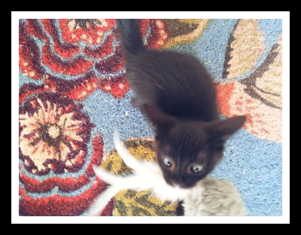 Fêmea, preta, olhos azuis, 2 meses, vermifugada. Já usa caixinha de areia e gosta de banho. É carinhosa, brincalhona, companheira e adora uma coçadinha na pancinha.