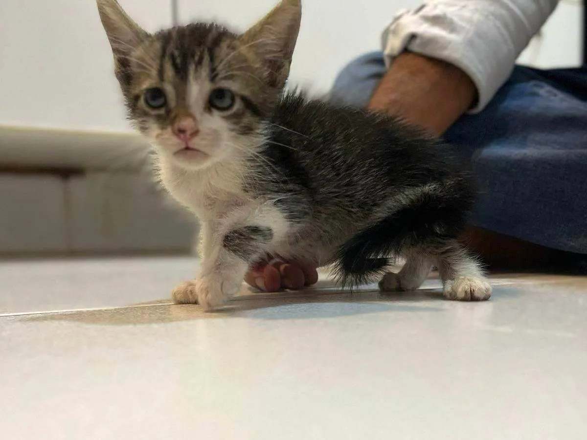 Adote um adorável gato SRD com menos de 2 meses. Ele é carinhoso, sociável e se adapta bem a diversos ambientes. Dê a ele um lar cheio de amor.