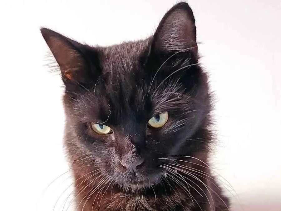Ajude a encontrar Nicolas, o gato macho peludinho preto desaparecido. Castrado, com coleira de cachorro e dois fios brancos nas costas. Adote e compartilhe essa
