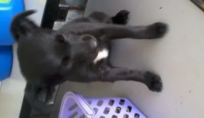 ela é pequena,o pelo é preto,atende pelo nome de piquena,agora ela deve estar um pouco grandinha,vira lata,muito fofa...