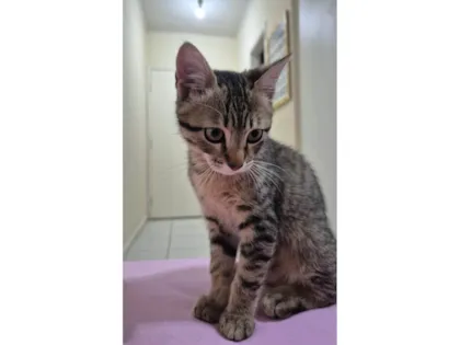 Está à procura de um companheiro felino adorável? Conheça este gatinho de apenas alguns meses, que promete encher sua casa de alegria e carinho. Ele possui uma bela pelagem rajada, muito característica e charmosa.