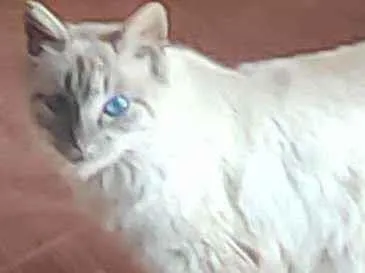 É gordinha dos olhos azuis toda branco cm umas partes pretas, super dócil