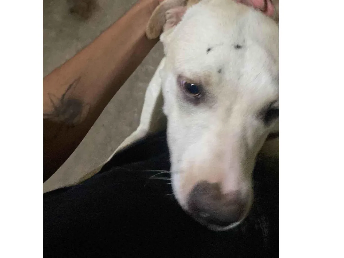 Adote Canabis, um adorável Pit-Bull branco de 7 a 11 meses. Vacinado e brincalhão, ele é o companheiro perfeito para alegrar sua casa.